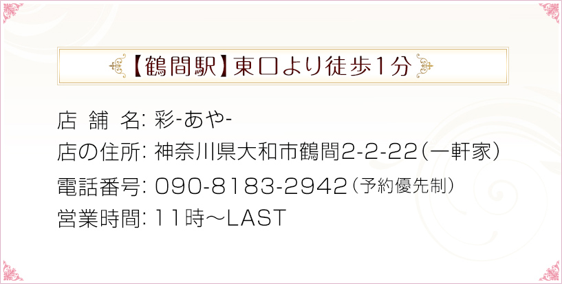 鶴間マッサージ 「彩-あや-」店住所:神奈川県大和市鶴間2-2-22